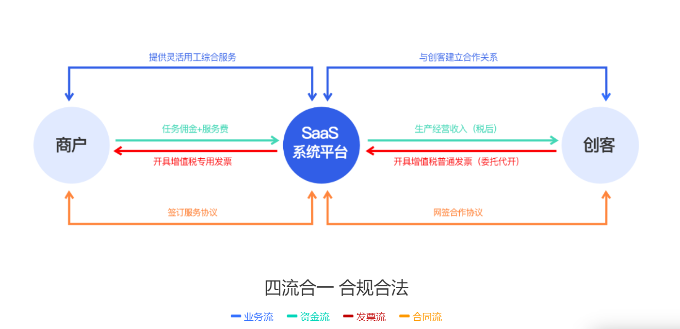 如上所诉,我们可以发现,一个专业的灵活用工服务平台须实现“四流合一”。